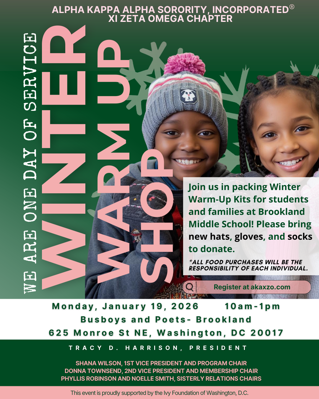 Join us for a meaningful day of service at Busboys and Poets in Brookland! We’ll be coming together to support students and families at Brookland Middle School by assembling Warm-Up Kits filled with new hats, gloves, and socks.