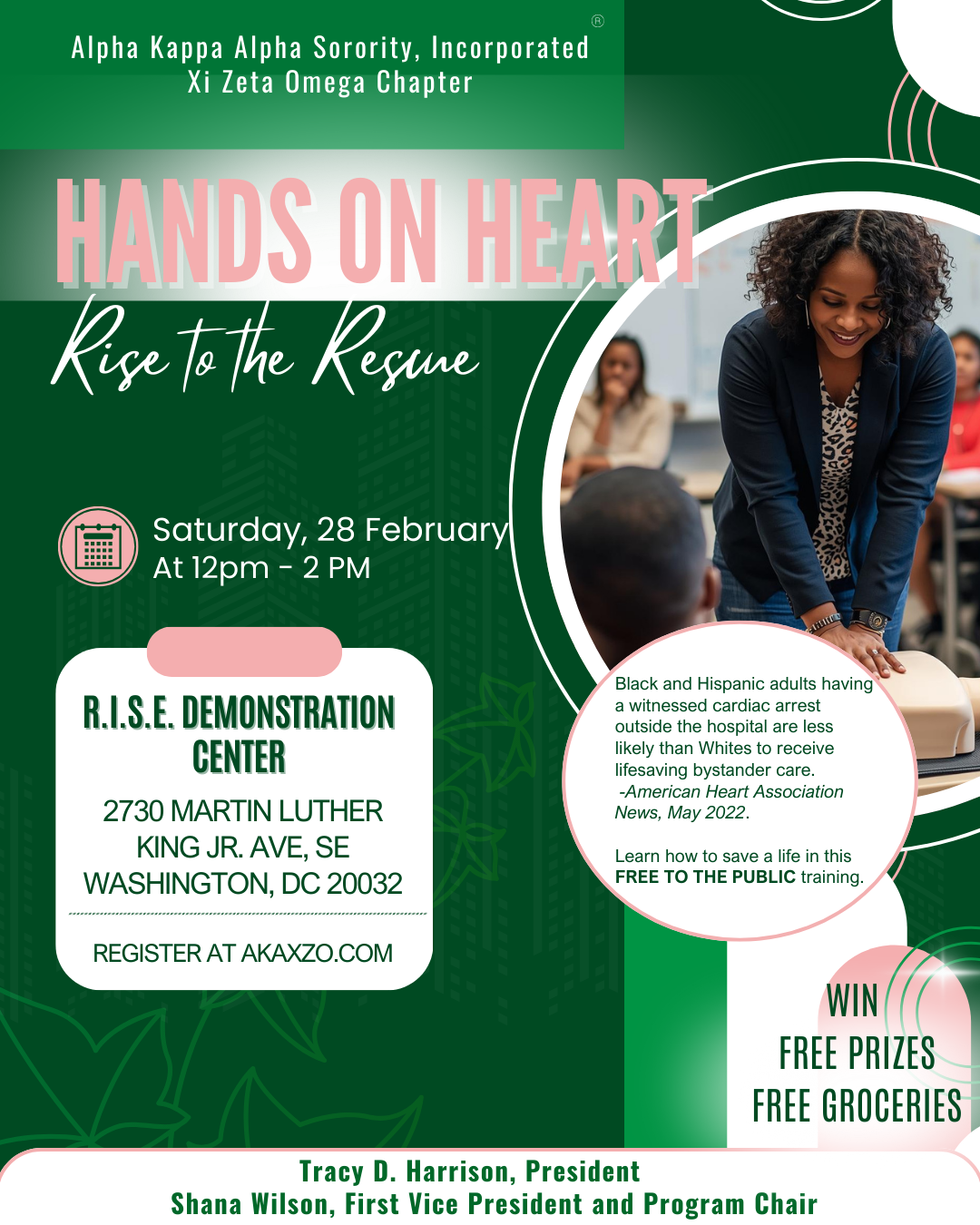 According to the American Heart Association (2022), Black and Hispanic adults having a witnessed cardiac arrest outside the hospital are less likely than Whites to receive lifesaving bystander care. Learn how to save a life in this FREE TO THE PUBLIC training. Rise to the Rescue! Must be 18 years or older to participate in the training.